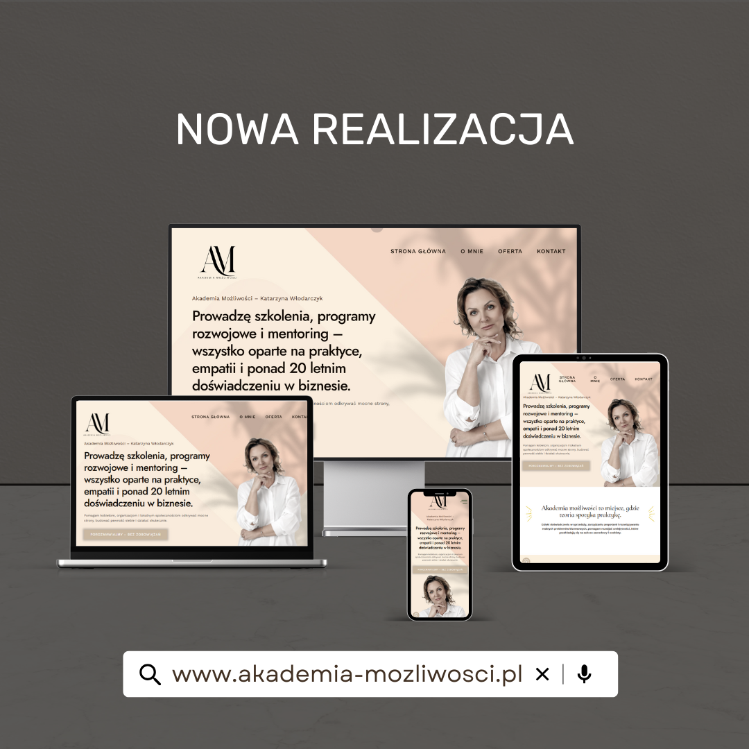 Minimalistyczny układ, dopasowana kolorystyka i czytelność na każdym urządzeniu sprawiają, że strona działa jak skuteczna wizytówka online – budując profesjonalny wizerunek i ułatwiając zdobywanie nowych klientów 🚀